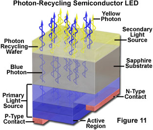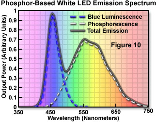 產(chǎn)生白色光的另一種手段是通過組合三種顏色的發(fā)光,將產(chǎn)生的白色光的感知當(dāng)它們被組合以適當(dāng)?shù)墓β时取0咨猓部梢酝ㄟ^從發(fā)射在可見光譜的一個(gè)大的區(qū)域的物質(zhì)的寬帶發(fā)射產(chǎn)生的。這種類型的發(fā)射的接近太陽光,并且被認(rèn)為是白色的。此外,寬帶發(fā)射可以與發(fā)射在離散頻譜線,以產(chǎn)生感知的白色,其可具有從這些白色光通過其他技術(shù)產(chǎn)生不同的特定期望的顏色特性進(jìn)行組合。