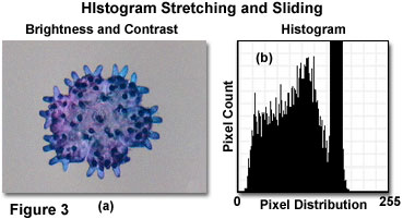 背景減法或平場校正調整后,已應用于圖像,下一步是恢復亮度和對比度水平相匹配的試樣在顯微鏡的外觀(通過目鏡或現(xiàn)場視頻飼料的攝像頭接口軟件)。直方圖拉伸和滑動操作通常顯示為亮度對比在常見的圖像編輯軟件調整滑塊。的直方圖分布更復雜的操作在高端軟件包通常是可能的,但在所有的圖像編輯現(xiàn)有的基本工具通??梢杂脕磉M行調整的圖像。