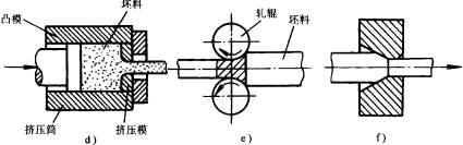 a)自由鍛? b)模鍛? c)板料沖壓? d)擠壓??e)軋制??f)拉拔