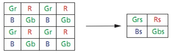 第三種BIN(binning mode),就是把相鄰的像素合成一個像素,然后再輸出。如下所示,2 bin to 1 所有的像素都參與了新像素的生成。