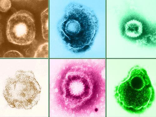 這些顯微圖像顯示的都是單純皰疹病毒(HSV) 。單純皰疹是一種病毒感染,會(huì)導(dǎo)致皰和腫痛,通常位于嘴和鼻子周?chē)?br />