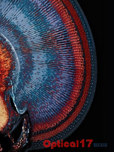 德國慕尼黑馬克斯-普朗克神經(jīng)生物學(xué)研究所的伊格爾-希瓦諾維茨(Igor Siwanowicz)博士使用兩組搭接共焦顯微照片,Zui終獲得了蜻蛉眼睛顯微成像效果.實際上該圖像所拍攝目標(biāo)的真實大小僅有0.6 x 0.8毫米.