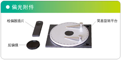 選擇偏光附件可以實(shí)現(xiàn)偏光觀察 簡(jiǎn)易偏光旋轉(zhuǎn)平臺(tái)、起偏鏡、檢偏器插片 |