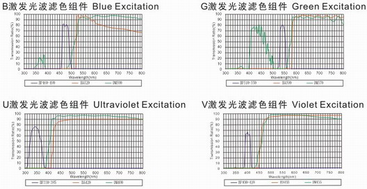 | U激發(fā)光波濾色組件 | BP330~385 | DM400 | BA420 | ○ | |