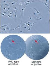 培養(yǎng)液在容器邊緣形成的彎面非常不利于普通的物鏡進(jìn)行相差觀察。奧林巴斯的PHC型10×和20×物鏡在觀察培養(yǎng)皿邊緣時(shí)仍能得到銳利的相差圖像。能更簡便地進(jìn)行多種觀察也是它的其中一項(xiàng)優(yōu)點(diǎn),再結(jié)合UIS2光學(xué)系統(tǒng)的高平場性,促成了IX51在觀察培養(yǎng)皿邊緣細(xì)胞時(shí)仍然能夠得到非常清晰的效果。